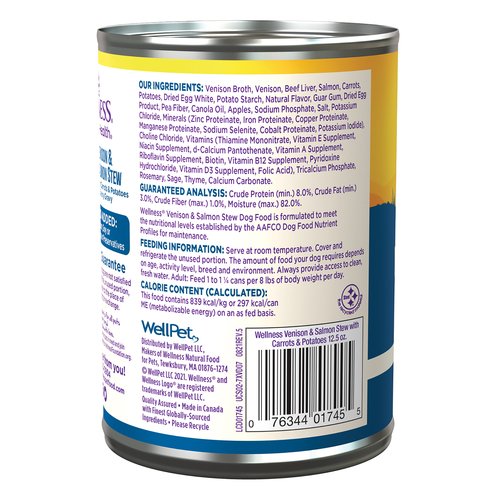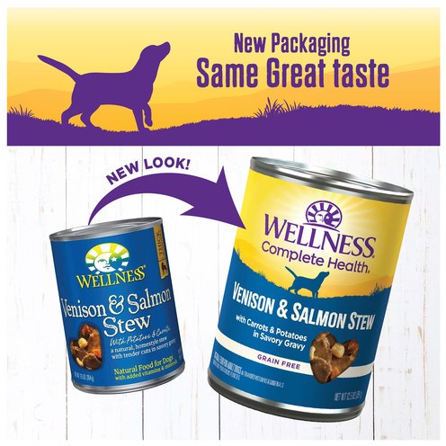 Wellness Thick & Chunky Natural Grain Free Canned Dog Food, Venison & Salmon Stew, 12.5-Ounce Can (Pack of 12)