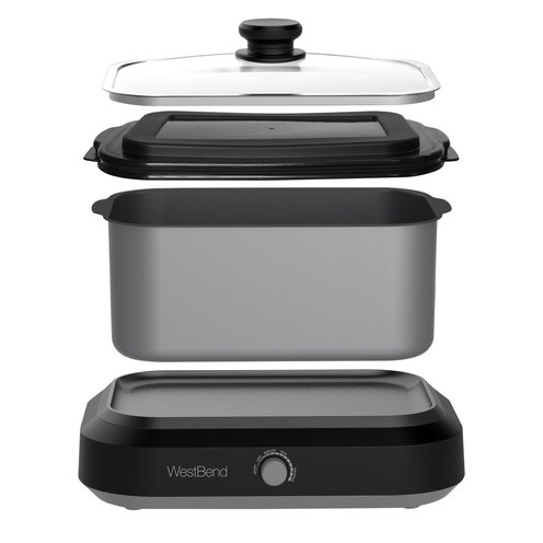 Simplify your cooking experience with the West Bend Versatility Cooker, featuring a 6QT vessel, storage bag and non stick cooking surface. From intimiate dinners to entertaining a crowd, it is your all in one slow cooker, oven ready roaster, stovetop pot and electric griddle.