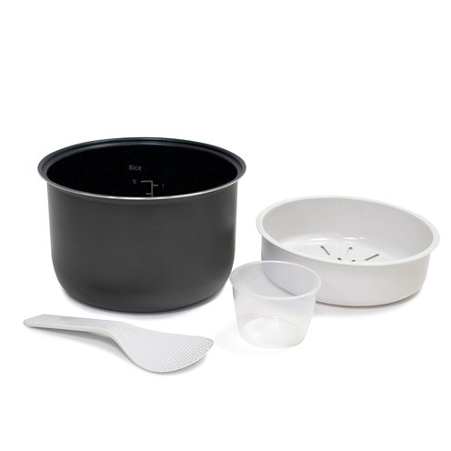 - 7 preset functions: White Rice, Brown Rice, Multigrain Rice, Quinoa, Oatmeal, Keep Warm, Delay Start