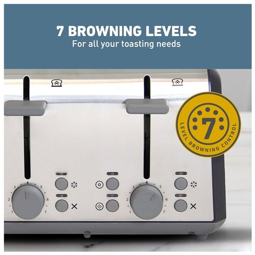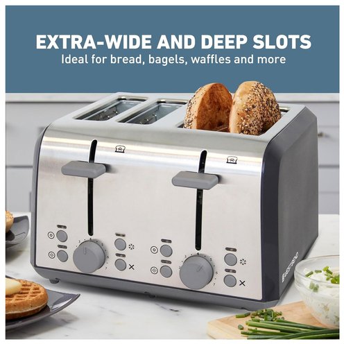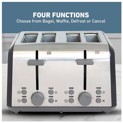 The West Bend 4-Slice toaster with Ultimate Toast Lift feature elevates your foods to new heights. Food is easily and safely removed from the toaster. Toaster includes bagel, waffle, defrost, and cancel functions. Extra wide, self-centering slots, provide even toasting and accommodate many types and styles of breads, bagels, waffles, and more. Stainless steel accents look attractive in any kitchen.
