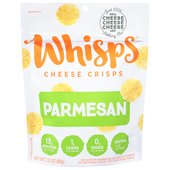 Just 100% real cheese cheese cheese and nothing else. Parmesan to the people! What happens when we take award-winning Parmesan (made the old-world way in copper kettles), age it over a year, grate it, and bake it? The rich, nutty, fruity taste of Parmesan Whisps! Sounds simple, but there's magic in those kettles. Whisps Cheese Crisps are made by cheese people, for cheese people. We make our crisps from just one ingredient (you guessed it!): 100% wheel cheese. First, master cheesemakers craft our artisanal cheeses to perfection. Then we bake them into light, flavorful crisps - protein packed, low carb and gluten free - for a playfully perfect snack to beat even your cheesiest cravings. Contents may settle upon shipping-sold by weight not volume. Cheesed to perfection.