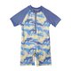 Made for sunny days and easy splashes. This soft swim one-piece features calm ocean blues friendly shark prints. The zip-front design makes changes quick and simple, while the smooth, stretchy fabric keeps little swimmers comfortable all day long