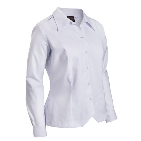 The overblouse shall be worn outside the service dress slacks or optional skirt. The collar should not gap at the neckline; the overblouse should lay smoothly over the bust and hips. Different fit types are available to accommodate different body types. The length shall be long enough to fall approximately one inch above the bottom of the side pocket opening but not extend beyond the service dress coat. The length of the sleeves should cover the wrist bone to allow for proper fit while saluting. All buttons should be fastened and should be loose enough that there is no gapping or wrinkling.