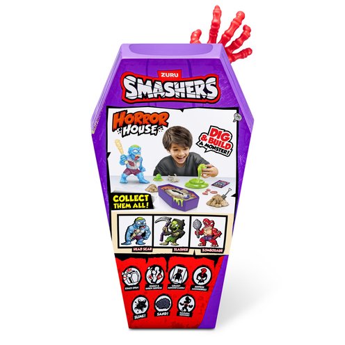 Smashers Horror House takes you on a spooky quest. Smash, dive in, dig, and dissect to bring your monster to life...if you dare! With 15+ surprises inside, are you brave enough to open up the coffin and unearth the incredible monster? Build and battle your monsters as you collect them all!