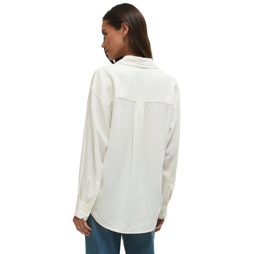Easygoing meets elevated in this linen button-up, designed with a perfectly draped silhouette, collared neckline, and relaxed sleeves. It's refined simplicity at its best.