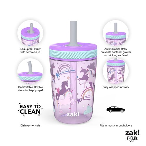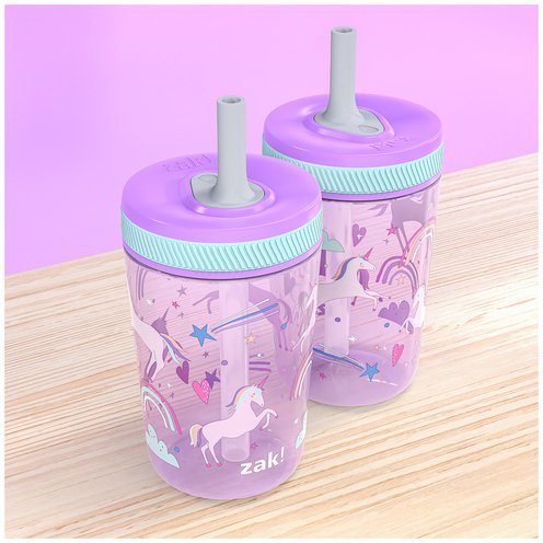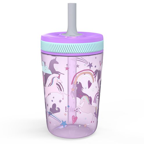 This fun straw tumbler will keep kids hydrated without any fuss! Let's keep it simple: this tumbler doesn't leak. The silicone sipper spout has a built-in valve that stops water from flowing when no one is drinking, so it's easy for children to quench their thirst but won't make a mess if the tumbler is tipped over. It's the perfect choice for active kids, or young ones just graduating from sippy cups who aren't ready for an open-topped tumbler yet. The antimicrobial drinking spout helps prevent the spread of bacteria, so you don't have to worry when you take this travel cup on the go, and the 15-ounce plastic tumbler is lightweight and sturdy enough for everyday adventures. The materials are completely BPA free and shouldn't be microwaved - this cup is made for cold drinks. And at the end of the day, you can just disassemble the lid and spout and put everything in the top rack of the dishwasher for a quick and easy clean.